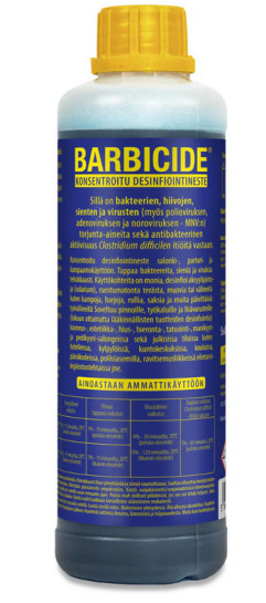 - Barbicide on tehokas desinfiointitiiviste, joka on suunniteltu käytettäväksi jalkahoitoloissa, kauneushoitoloissa, kynsistudioissa. Instrumenttien ja työvälineiden desinfiointiin.